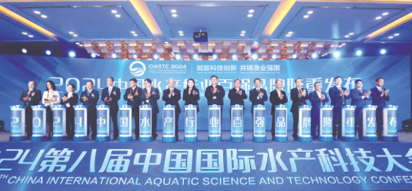 大会期间,隆重发布“新质生产力引领行业高质量发展”行动倡议暨“2024中国水产行业百强品牌”。中国水产流通与加工协会会长崔和发布倡议书,并表示,为加快发展水产领域新质生产力,进一步提升行业发展质量,端牢“中国饭碗”,提出加强创新研究,加快推进水产种业振兴;加强新技术应用,推动产业转型升级;加强全球渔业科技创新合作;加快发展生态友好型渔业;积极探索三产融合新模式,助力乡村振兴等五大倡议。同时,“2024中国水产行业百强品牌”隆重揭晓,重要领导嘉宾共同上台按下发布按钮,见证这一重要时刻。